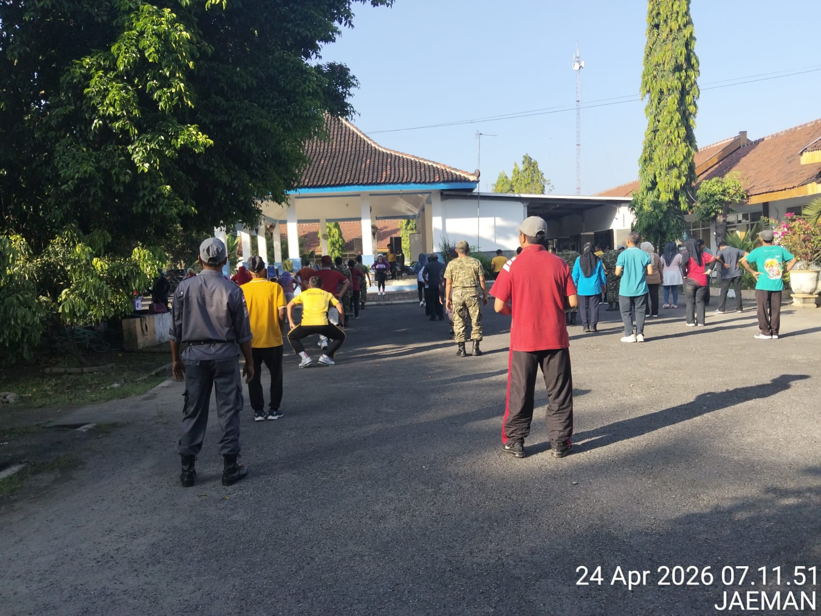 Senam bersama (sering di lapangan atau halaman kantor kecamatan)